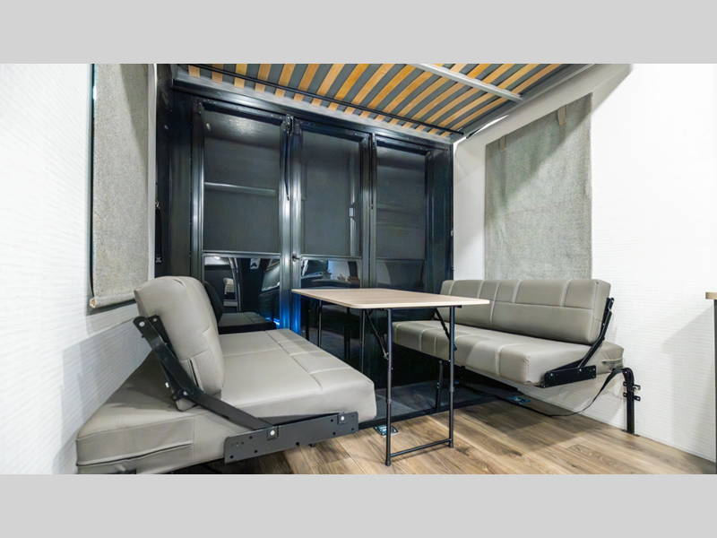 There is a rear beaver tail frame, a docking station, and a magnetic screen wall so you can let the fresh air in without letting the bugs in. You will be delighted with the fiberglass floor insulation and LED lights, and there is a tankless water heater to provide endless hot showers after trail riding. The Alumifoil insulated enclosed underbelly will help extend your camping season, and the patio railing kit will let you enjoy more time outdoors once the toys are unloaded.