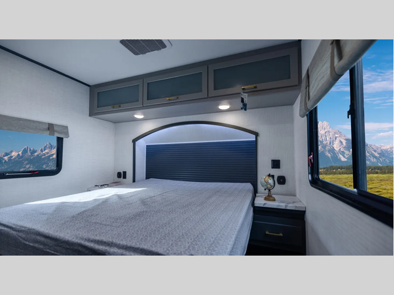 Sleeps 6 Length 31 ft 4 in Ext Width 8 ft 5 in Ext Height 13 ft 4 in Hitch Weight 2090 lbs Dry Weight 9094 lbs Cargo Capacity 5000 lbs Fresh Water Capacity 102 gals Grey Water Capacity 108 gals Black Water Capacity 32 gals Furnace BTU 35000 btu Fuel Capacity 30 gals Number Of Bunks 1 Available Beds King Refrigerator Type 12V French Door Black Refrigerator Size 10 cu ft Convection Cooking Yes Cooktop Burners 3 Shower Size 30" x 36" Number of Awnings 1 Garage Size 16 ft Water Heater Type Tankless AC BTU 15000 btu Awning Info 20' Power Axle Count 2 Shower Type Tub/Shower Combo Electrical Service 50 amp Solar Wattage 200 watts Similar Floorplans
